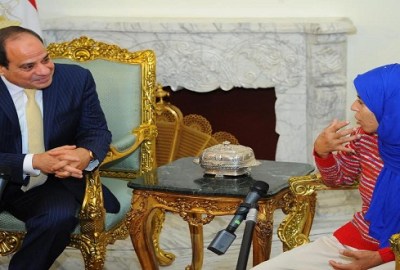 استقبل الرئيس عبد الفتاح السيسي اليوم، السيدة منى السيد إبراهيم بدر صاحبة صورة جر عربة البضائع بالإسكندرية، حيث أعرب الرئيس عن سعادته بالالتقاء بها بعدما شاهد بإعجاب شديد كفاحها وإصرارها على تحقيق واقع أفضل لها ولأسرتها.