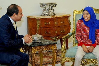 لكن هذه المرة لم يكن هناك أي ترتيب. الصورة انتشرت فجأة على مواقع التواصل الاجتماعي، لسيدة أربعينية في غاية البساطة، فوجئت أن حياتها اتسعت من الأحياء المحدودة التي تتجول فيها بالإسكندرية يوميا، ليقوم الإعلامي عمرو أديب بالاتصال بها، لمعرفة تفاصيل أكثر عنها، ثم يُشاهدها الرئيس السيسي، ويقرر مقابلتها في قصر الاتحادية، لتكريمها وتعويضها عن سنوات الشقاء.