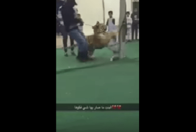 أوضح الناطق الإعلامي بشرطة منطقة الجوف الرائد يزيد بن سعود النومس، مساء الأحد (20 نوفمبر 2016) أنه من خلال متابعة الحالة الأمنية بمقر فعاليات مهرجان الصناعات الاستهلاكية الواقع بجوار نادي العروبة شمال مدينة سكاكا مساء أمس السبت لوحظ قيام مدرب الحيوانات المفترسة (مواطن عشريني) بإخراج احد الحيوانات (نمر) خارج القفص المخصص له، مما أدى لمهاجمته لطفلة ( ٨ سنوات) كانت موجودة بالقرب من المدرب وتم تخليصها منه بدون إصابات ولله الحمد،