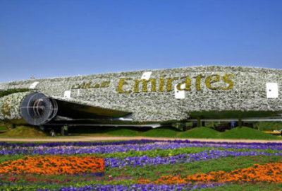 انتهت مدينة دبي مؤخرًا من صناعة مجسم بالحجم الحقيقي لطائرة إيرباص مكسوة بأكثر من 500 ألف زهرة ووردة ونبات، وسيصل عددها عندما تفتح كل الزهور إلى 5 ملايين زهرة.