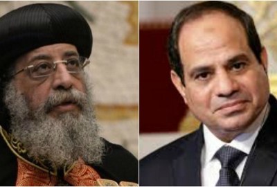 أجرى الرئيس عبد الفتاح السيسي اتصالاً هاتفياً بقداسة البابا تواضروس الثاني، بابا الإسكندرية وبطريرك الكرازة القبطية، حيث أعرب عن خالص العزاء والمواساة لشهداء الوطن الذين سالت دماؤهم الطاهرة نتيجة العمل الإرهابي الآثم الذي تعرضت له الكنيسة البطرسية بالقاهرة صباح اليوم، مؤكداً عزم مصر شعباً وحكومة على الاستمرار في التصدي للإرهاب حتى اجتثاث جذوره تماماً من تراب مصر المقدس. كما أكد السيد الرئيس ثقته المطلقة في قدرة الشعب المصري بمسلميه وأقباطه على التكاتف صفاً واحداً وعلى تحقيق النصر في الحرب ضد الإرهاب، باعتبارها معركة المصريين جميعاً.