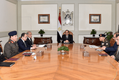 يعقد الرئيس عبد الفتاح السيسي الآن اجتماعاً أمنيًا عاجلًا، يحضره المهندس شريف إسماعيل رئيس مجلس الوزراء، والفريق أول صدقي صبحي القائد العام للقوات المسلحة وزير الدفاع والإنتاج الحربي، ومجدي عبد الغفار وزير الداخلية.