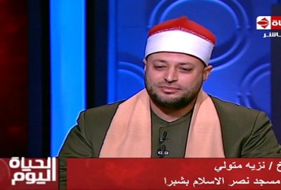 أوضح الشيخ نزيه متولي خلال لقائه مساء اليوم مع برنامج “الحياة اليوم” الذي يبث على قناة “الحياة”، إنه ذهب أمس إلى عزاء شقيق أحد معارفه الأقباط الموجودين بجوار بيته، من الذين توفوا في حادث الكنيسة البطرسية، الذي وقع صباح يوم الأحد الماضي.