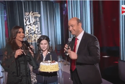 وقدم فريق إعداد البرنامج للمطربة الشابة “تورتة” وقامت بتقطيعها برفقة عمرو أديب، حتى تكون بداية سعيدة للعام الجديد.