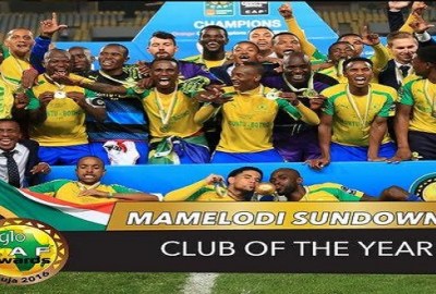 توج فريق صن داونز الجنوب أفريقي، بطل دوري أبطال أفريقيا في نسخته الماضية بعد فوزه على الزمالك في النهائي بمجموع مباراتي الذهاب والإياب 3 / 1 بجائزة أفضل نادى في القارة السمراء لعام 2016 خلال حفل جوائز الاتحاد الإفريقي للعبة المقام حاليًا، في مدينة أبوجا النيجيرية .