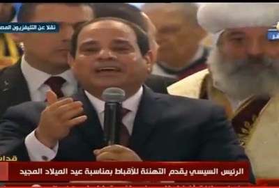 هنأ الرئيس عبد الفتاح السيسي، الأقباط بعيد الميلاد المجيد، وذلك أثناء حضوره قداس عيد الميلاد بالكاتدرائية المرقسية بالعباسية، قائلًا: ” كل عام وأنتم بخير وعيد سعيد وسنة سعيدة علينا كلنا”.