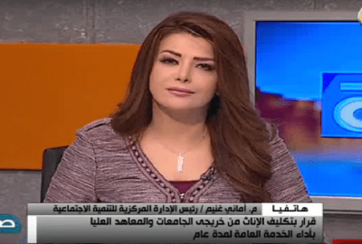 أضافت خلال اتصال هاتفي مع برنامج “صباح أون” الذي يقدمه كل من الإعلامي محمد عبده بدوي، والإعلامية أسماء يوسف، أن قانون الخدمة العامة صادر من سبعينات القرن الماضي، وهو عبارة عن خدمة للمجتمع يقدمها المتخرج عقب سنة التخرج مباشرة.