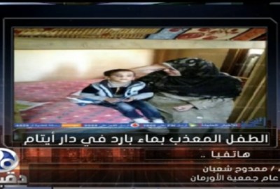 عرض الإعلامي معتز الدمرداش، فيديو مصور، عبر برنامجه “90 دقيقة” الذي يُبث عبر فضائية “المحور”، مساء اليوم السبت، يظهر فيه طفل يُدعى “أحمد”، أحد المقيمين في دار الأيتام التابعة لجمعية “الأورمان” في التجمع الخامس، حيث أكد الأخير أنه يستحم بمياه باردة يوميًا، بأمر من المشرفة.