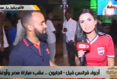 حرصت “علي” على نقل أجواء المباراة من ميدان “فرانس فيل” بالجابون، حيث أكبر الميادين التي تشهد ازدحامًا كبيرًا من مُشجعي كرة القدم، لمشاهدة مباريات فرقهم المُفضلة، حيث ظهر أفراد من الجالية المصرية، والعربية يرفعون الأعلام المصرية احتفالًا بفوز المنتخب في الدقائق الأخيرة من عمر المباراة.