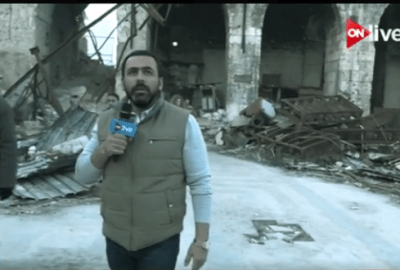 جاء ذلك في إطار قيام الإعلامي يوسف الحسيني وفريق برنامجه برحلة إلى سوريا استهدف من خلالها رصد الدمار اللاحق بمدينة “حلب” السورية وعرضه خلال البرنامج، تحت عنوان “هنا حلب”.
