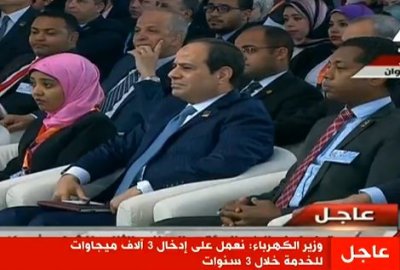 قاطع الرئيس عبد الفتاح السيسي، الدكتور محمد شاكر وزير الكهرباء، خلال استعراضه المشروعات التي نفذتها الوزارة خلال العامين الماضيين، بقوله: “إنه من الضرورة إطلاع الشعب المصري على أهمية دفع رسوم الخدمة، لأنه في حال التراجع عن الدفع سوف تتراجع وتنتهي”.
