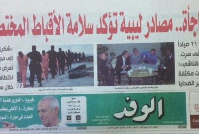 أثار مانشيت صحيفة “الوفد” الذي يقول “مفاجأة .. مصادر ليبية تؤكد سلامة الأقباط المختطفين”، السخرية على مواقع التواصل الاجتماعي، خاصة وأنه في نفس التوقيت تم التأكد من إعدام الـ 21 مصريًا على يد تنظيم داعش الإرهابي، في ليبيا.