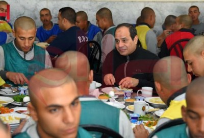 تناول الرئيس عبد الفتاح السيسى، وجبة الإفطار، مع طلبة الكلية الحربية، وذلك بعد زيارة مفاجئة لهم، فجر اليوم، لتفقد مراحل الإعداد البدنى والمهارى المختلفة لطلبة الكلية.