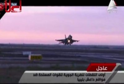 «أذاعت القوات المسلحة أول مشاهد الغارة الجوية التي شنتها الطائرات الجوية ضد معاقل تمركز «داعش» في ليبيا، وذلك بعد مقتل 21 مصرياً على أيدي مسلحي داعش.