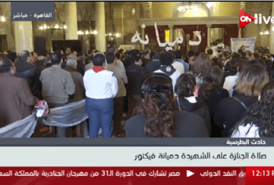 نقلت كاميرا on live صلوات الجنازة على روح الطفلة دميانة أمير شهيدة تفجير البطرسية الـ29، حيث دخل جسدها مصحوبًا بالمارش الجنائزى ودق الطبول وسط حضور المئات من المشيعين من عائلتها وزملائها بمدرسة نوتردام.
