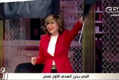 أحضرت “الحديدي” العلم المصري في حلقة مساء اليوم الأحد من برنامجها”هنا العاصمة”، الذي يبث على قناة”cbc”، وقفزت من الفرحة ممسكة بالعلم في فرحة شديدة وهي مرتدية اللون الأحمر تشجيعاً للمنتخب المصري في مباراته مع الفريق الكاميروني في نهائي بطولة افريقيا.