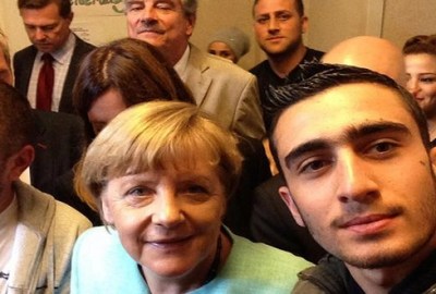 وكانت المستشارة آنذاك، وبعيد قرارها بفتح الحدود أمام اللاجئين، قد زارت مركزا لإيواء اللاجئين في برلين. وأعربت عن استعدادها لالتقاط صورة مع اللاجئ. لكن الصورة حُورت فيما بعد وانتشرت في سياقات أخرى غالبا ما كانت تصب في الانتقادات التي وجهت لسياسات المستشارة ميركل فيما يخص موضوع اللاجئين.
