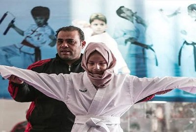 لم تقف الإعاقة في وجه طموح الطفلة الفلسطينية منة الله البيطار (13 عاما)، بأن تمارس رياضة الكاراتيه وتتعلم فنونها القتالية، حسب التقرير الذي نشره موقع “زمان“.