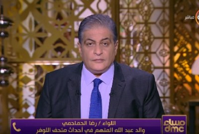 أوضح اللواء رضا الحماحمي أن نجله لا يمكن أن يكون تعدى على ضابط الشرطة في المتحف، منوها بأن نجله شاب عمره 27 سنة وجسمه ضعيف على نحو ما ولا يمكن له أن يعتدي على أحد، مؤكدا أن ابنه شاب مسالم جدا يحب الرسم والموسيقى والغناء ويهوى كرة القدم، وليس له علاقة حتى بأي أمور سياسية أو إرهابية، ولا يتحدث أبدا في تلك الأمور.