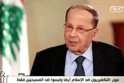 أضاف “عون” خلال لقاء تلفزيوني مع الإعلامية لميس الحديدي تم عرضه مساء السبت، في برنامجها “هنا العاصمة”، الذي يبث على قناة “CBC”، أنه يريد تبادل ملفات النقاش مع القيادة السياسية المصرية حول المشاكل العربية والتغييرات التي حلت بالمنطقة، والتوصل لمعايير واستراتيجيات سياسية للوصول لحلول سلمية تنقذ المنطقة العربية الواقعة بين سندان الإرهاب ومطرقة التدخل الأجنبي.