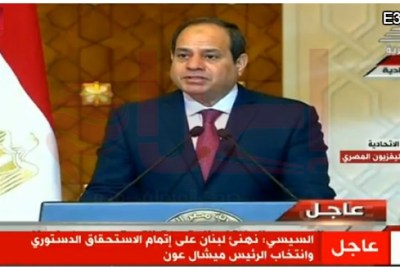 هنأ الرئيس عبد الفتاح السيسي، نظيره اللبنانى ميشيل عون، على نجاح لبنان فى استكمال الاستحقاق الرئاسي وتشكيل حكومة جديدة تحظى بثقة المواطن اللبنانى.