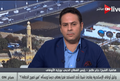 من جانبه قال الشيخ جابر طايع رئيس القطاع الديني بوزارة الأوقاف، خلال مداخلة هاتفية لبرنامج “صباح ON” الذي يُعرض عبر شاشة ON LIVE، ويقدمه الإعلامي محمد عبده بدوي والإعلامية نهاوند سري، صباح السبت إن ما فعله الدكتور وكيل وزارة الأوقاف بالإسكندرية هو أبلغ رد على من يقول أن الوزارة تفرط في المنابر، وأيضًا في الدروس داخل المساجد وتعطي فرصة للدخلاء في هذا الأمر.