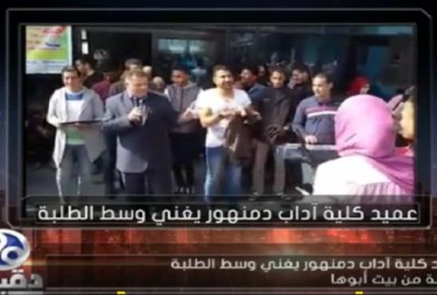 أوضح الدكتور محمد رفعت الإمام، عميد كلية الآداب بجامعة دمنهور، سبب غنائه مع الطلاب أغنية “طالعة من بيت أبوها”، قائلا إنهم قضوا الترم الأول في حالة تشوبها الكآبة، وذلك بسبب آليات التطوير التي اعتمدتها إدارة الكلية، وإدخال لائحة جديدة، مُشيرًا إلا أن بعض المُعترضين على ذلك، تمكنوا من ترهيب الطلاب وكآبتهم، على حد وصفه.