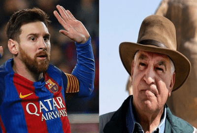 وقال الدكتور حواس أنه قد صرح وقت زيارة نجم الكرة العالمي ليو ميسي للأهرامات أنها تعتبر أهم من زيارة رؤساء الدول ونجوم هوليوود، لأن رجل الشارع العادي يعرف ميسي ويتفاعل معه، ولكن النخبة والمثقفين فقط يعرفون ويتفاعلون مع السياسيين والرؤساء.