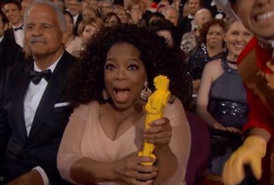 وينفري اصطنعت في موقف طريف، شعور السعادة الذي ينتاب كل من يحصل على جائزة الأوسكار.