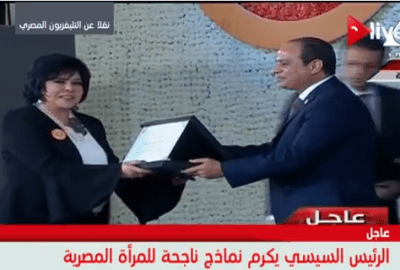 رأت أن الرئيس السيسي مجامل جدا ويستمع جيدا للآخرين، مشيرة إلى أن هناك “طيابة” حوله، مازحة بقولها “كان كل همي متكعورش” أثناء صعودها للتكريم.