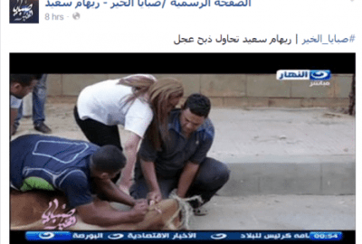 نشرت الإعلامية ريهام سعيد صورة على الصفحة الرسمية لبرنامجها «صبايا الخير» والذي يعرض على قناة «النهار» صورة لها وهي تذبح عجل ضمن حلقة برنامجها.