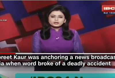 كانت المذيعة سوبريت كاور تقدم نشرة الأخبار على محطة “آي بي سي- 24” في ولاية تشاتيسغار، السبت، ثم انتقل البث إلى مراسل في مكان وقوع الحادث وتحدث عن وقوع ثلاثة قتلى من بين خمسة كانوا يستقلون سيارة رياضية متعددة الاستخدامات.
