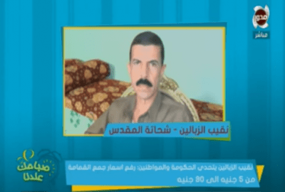 أضاف “المقدس” خلال مداخلة هاتفية مع الإعلامية إيمان سليم، ببرنامج “صباحك عندنا”، الذي يبث عبر فضائية “المحور”، صباح اليوم الأربعاء، أن هذه الزيادة ليست تحدي للحكومة، وتابع “أنهم كانوا يعيشون على ما يباع من المواد الصلبة الموجودة بالقمامة وبإعتماد هذه الأكشاك انتهى الدخل لجامع القمامة فلذا وجب زيادة القيمة إلى 30 جنيه”.