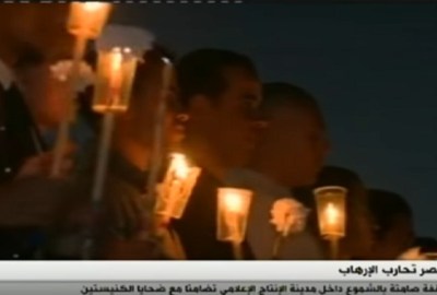 شهدت مدينة الإنتاج الإعلامي، مساء الجمعة، وقفة بالشموع، أمام الباب الرئيسي، تضامنًا مع ضحايا التفجيرين الإرهابيين، اللذين استهدفا كنيستي مارجرجس ومامرقص بطنطا والإسكندرية، الأحد الماضي.
