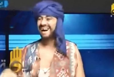 فيديو أخر يؤكد غياب القدرات الكوميدية يحمل لوجو قناة رابعة حيث مذيع ملتحي يطلقون عليه “شيخ” وفي هذه المرة يظهر معه عطوة في الدور الذي يحبه والذي يدأ به دور “الزبال” ساخراً مما حدث في “رابعة” .