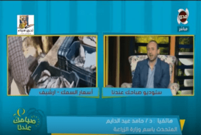 أضاف “عبد الدايم” خلال مداخلة هاتفية مع الإعلامي أحمد الشاعر، ببرنامج “صباحك عندنا” الذي يعرض على شاشة “المحور”، اليوم السبت، أن الدكتور عبدالمنعم البنا وزير الزراعة أقر بإعطاء الأسماك التي تطرحها “الزراعة” لوزارة التموين والتجارة الداخلية، وإلغاء المزاد الذي يتم عمله للصيادين لأخذ وشراء الأسماك من الوزارة.