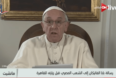 وجه البابا فرانسيس بابا الفاتيكان للشعب المصري، رسالة، اليوم الثلاثاء، أكد فيها زيارته إلى مصر، هذا الأسبوع، كصديق ورسول سلام، معربًا عن أمله في أن تكون الزيارة مساهمة صالحة مع الأديان في العالم الإسلامي، والكنيسة الأرثوذكسية المباركة.