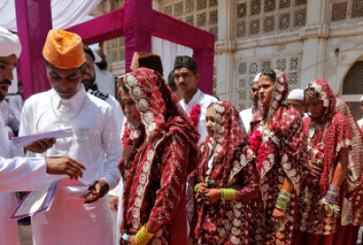 ومنح الوزير الهندي العصى ما يقرب من 700 عروس في حفل زفاف جماعي نظمتها حكومة الولاية السبت الماضي.