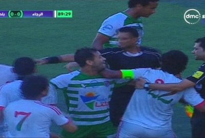 نشب شجار عنيف بين لاعبي الرجاء وبلدية المحلة خلال المواجهة الدائرة بين الطرفين من أجل بطاقة الصعود للدوري الممتاز.