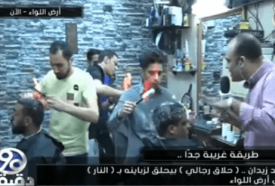 قدم برنامج “90 دقيقة” بثا مباشرا، اليوم الأحد، من منطقة بولاق أبو العلا، وخاصة من “محل حلاقة” خاص بالمواطن وليد زيدان، لتصوير أول حلاقة بالنار في مصر.
