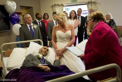 في مشهد بدا رومانسيا ومؤثرا في آن، وداخل إحدى غرف مستشفى سبرينغ هيل بروشديل البريطانية، نظمت مراسم زواج رجل يعاني مرض سرطان الأمعاء، وينتظر الموت في أي لحظة، على حبيبته.
