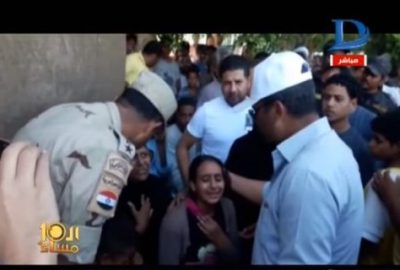 عرض الإعلامي وائل الإبراشي، تقريرًا مصورًا، عن طفلة جلست أمام منزلها وأجهشت في البكاء، خوفًا من هدم منزلها، بسبب قيام قوات من الجيش بتنفيذ عملية إزالة المنازل المقامة على أراضي الدولة بالأقصر، مما دفع قوات الجيش إلى تأجيل عملية الهدم؛ بسبب بكاءها.