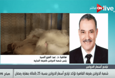 قال “السيد” خلال مداخلة هاتفية من الإعلامية نهاوند سري، والإعلامي حسام الدين حسين، ببرنامج “صباح أون”، الذي يبث عبر فضائية “”ON Live، صباح اليوم، الجمعة، إن أسعار الدواجن ستتراجع بنسبة 25% في نهاية شهر رمضان وذلك مع تراجع الطلب على السلع بنهاية هذا الشهر.