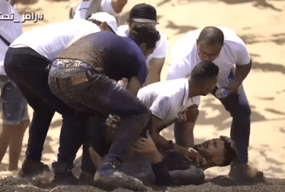 نجحا ضيفا البرنامج في الخروج من السيارة، قبيل غرسها في الرمال، إلا أن “كهربا” طالب سائق السيارة، بانتشال الحزام الخاص بها قبل اختفاءها وسط الرمال، لاستخدامه في ابتعاد السحلية عنهم.