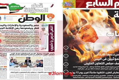 ينشر “إعلام دوت أورج“، الصفحات الأولى من صحف القاهرة الصادرة صباح يوم غد الثلاثاء، الموافق 6 يونيو 2017، وكيف تناولت أصدار كلا من، البحرين، والسعودية، ومصر، والإمارات،اليمن، ليبيا، جزر المالديف، بيانًا رسميًا خاصًا بكل منهم، اليوم الاثنين، للإعلان عن قطع علاقاتهم الرسمية مع قطر، وسحب البعثة الدبلوماسية الخاصة بهم، بالإضافة إلى منح مهلة 48 ساعة، لبعثة قطر الدبلوماسية، لمغادرة البلاد، وكذلك غلق الأجواء والموانئ البحرية والجوية كافة أمام وسائل النقل القطرية، بسبب دعمها وإيوائها للجماعات الإرهابية.