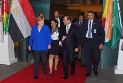 شارك الرئيس عبد الفتاح السيسي، مساء الاثنين، في مائدة مستديرة دعت إليها المستشارة الألمانية أنجيلا ميركل، بعنوان “الاستثمار في البنية التحتية في الدول الأفريقية”، بحضور الرؤساء الأفارقة المشاركين في القمة التي تنظمها الرئاسة الألمانية لمجموعة العشرين للشراكة مع أفريقيا، فضلاً عن رئيس مفوضية الاتحاد الأفريقي، ورئيس بنك التنمية الأفريقي، ورؤساء عدد من كبرى الشركات الألمانية.