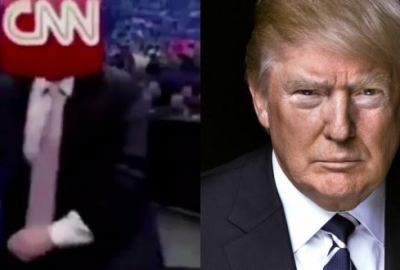 وقد ظهر ترامب في فيديو قديم إستعان به من أرشيف المصارعة الحرة “WWE”، حيث وجَّه عدة ضربات لمصارع قام بتركيب شعار الـ “CNN” على رأسه، وانهال عليه بالضرب واللكمات.