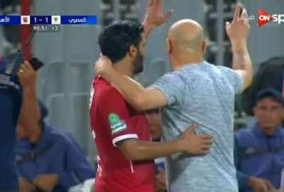 ليتدخل حسام حسن بعدها وتوجه لصالح وتحدث معه وطلب منه الإعتذار لجمهور المصري وبالفعل أشار لهما صالح بيده وأعتذر، بالإضافة إلى أنه توجه لجمهور المصري وطلب منهم الإلتزام والهدوء.