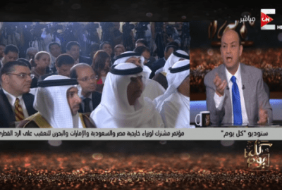 في نفس السياق، أوضح مقدم “كل يوم” أن قطر الآن ليس لديها أي ورقة أو وسيلة تستعين بها للخروج من هذه الأزمة سواء منبرها الوحيد ألا وهى قناة الجزيرة، لافتا إلى أن كل دولة من دول المقاطعة الأربعة لديها الكثير من الوسائل التي تتخذها ضد قطر، وذلك يتمثل في الكثير من الإجراءات الدولية والسياسية، والخاصة بكل من مجلس التعاون ومجلس الأمن وغيرها.