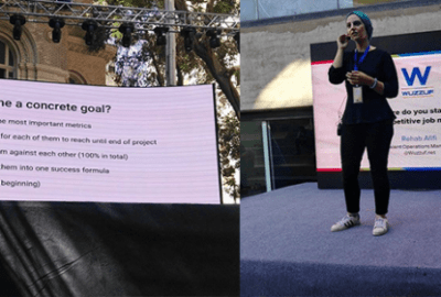 جاء بعد ذلك ضمن فعاليات اليوم، ورشتان إحداهما عن استراتيجيات التسويق وقدمتها الكسندرا مايا والأخرى عن المنافسة في سوق العمل وقدمتها رحاب عفيفي مديرة بموقع “وظف”.